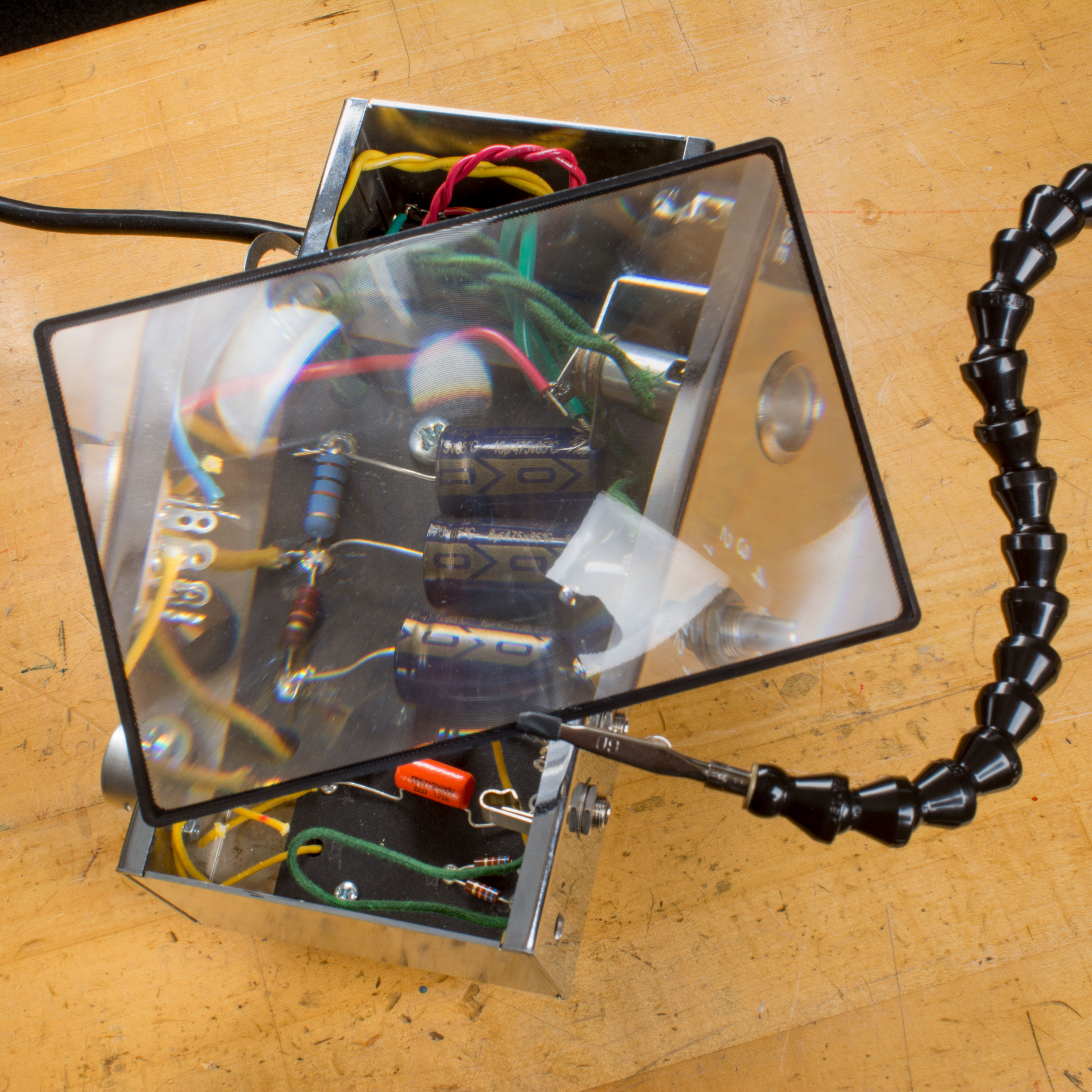 Es ist großartig, auf Ihrer Bank zu bleiben, wenn Sie über das Instrument eines Kunden blicken, die Verkabelung und Lötverbindungen in Gitarren oder Pedalen überprüfen und das Kleingedruckte auf den Etiketten lesen.