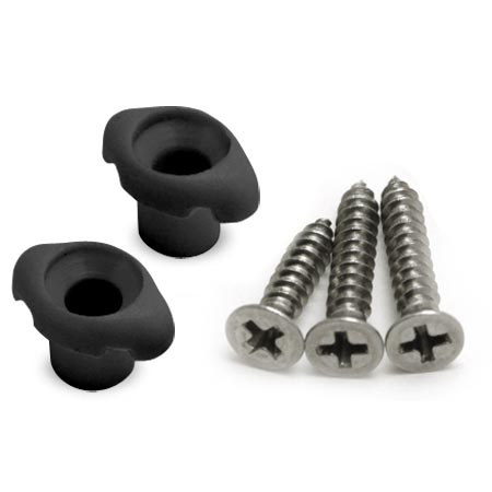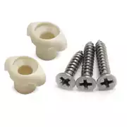 Jedes Set enthält eine kurze und zwei lange Phillips-Montageschrauben, damit Sie den erforderlichen Abwärtswinkel haben. Sie können den Stützring abschneiden/anschneiden, um einen steileren Winkel zu erreichen, der normalerweise für E- und B-Stränge verwendet wird.