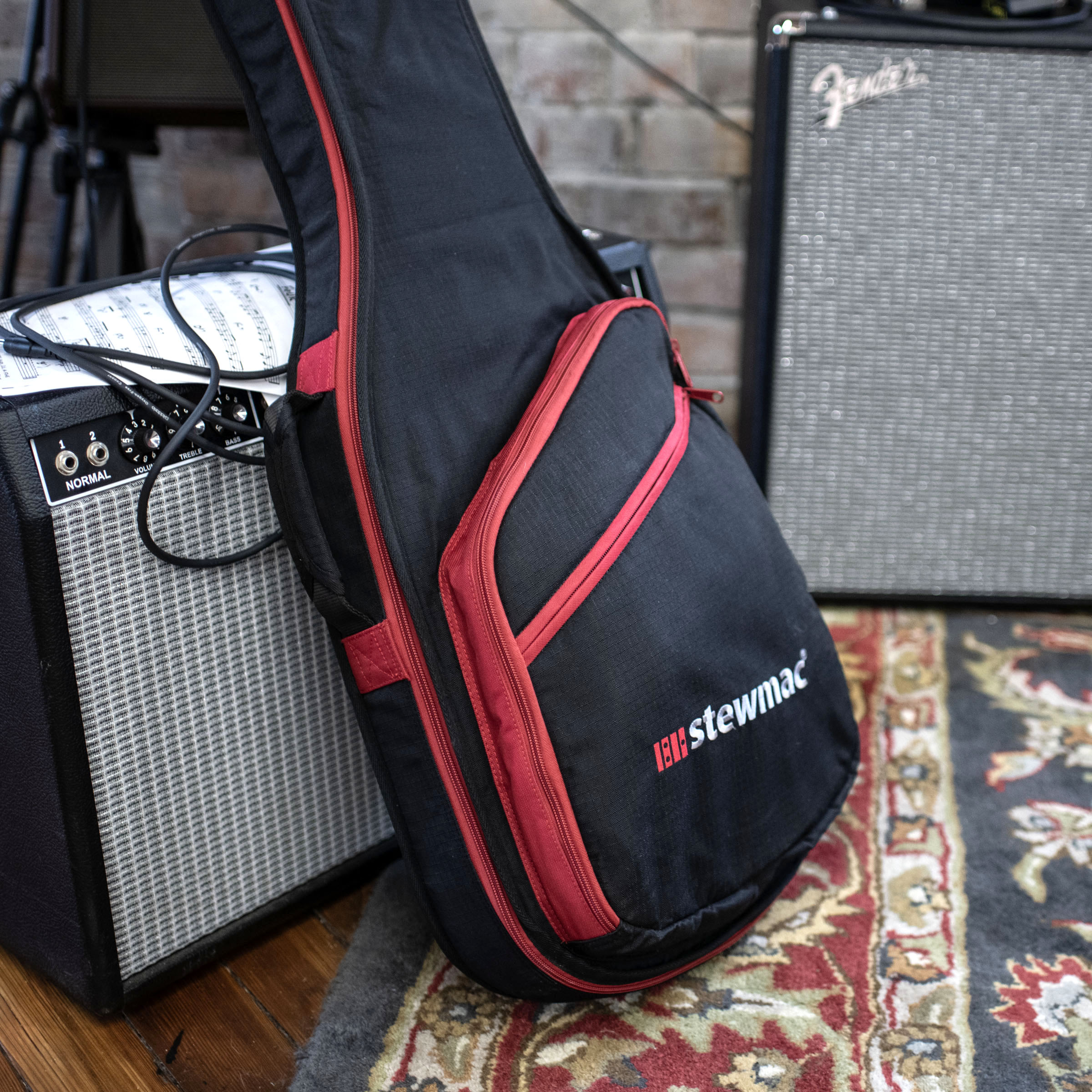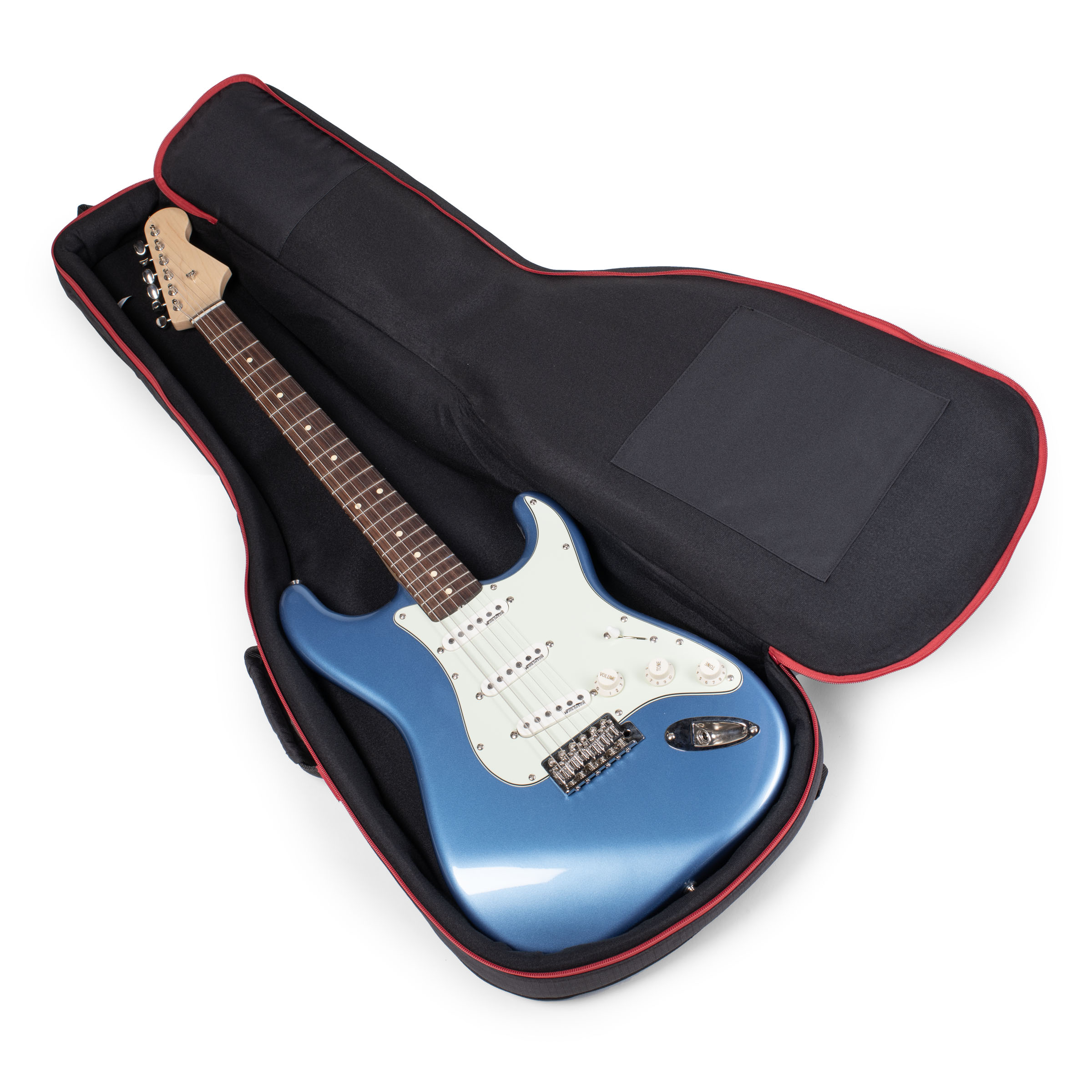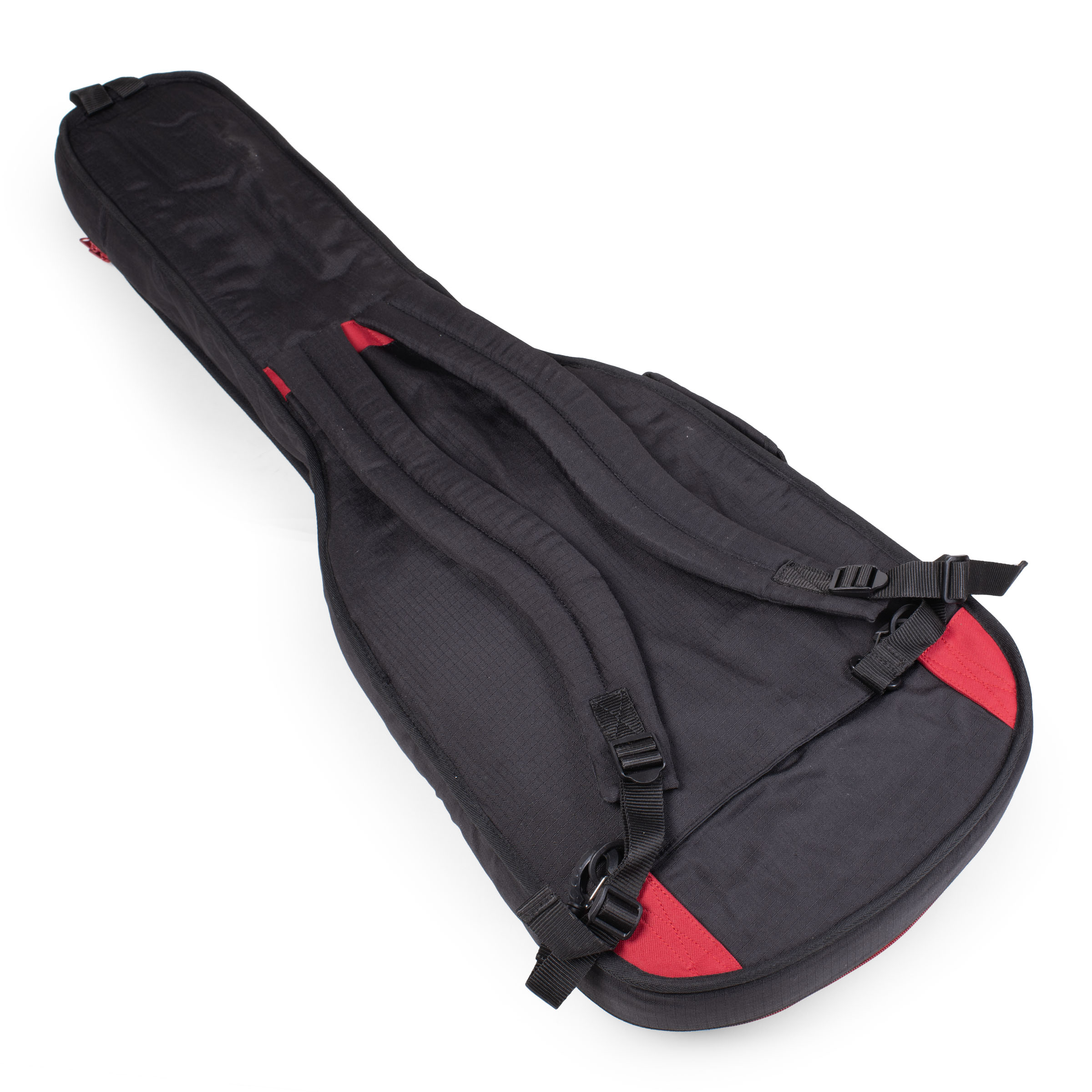 Setzen Sie sich nicht mit einer Tasche zufrieden, die nicht mehr als eine Staubabdeckung ist. Unser weiches Etui ist oben, hinten und vor allem an den Seiten mit 2,5 cm dicker Polsterung versehen. Dies schützt deine Gitarre vor den Stößen und Prellungen auf der Straße, ohne das Gewicht eines harten Koffers zu brechen.
