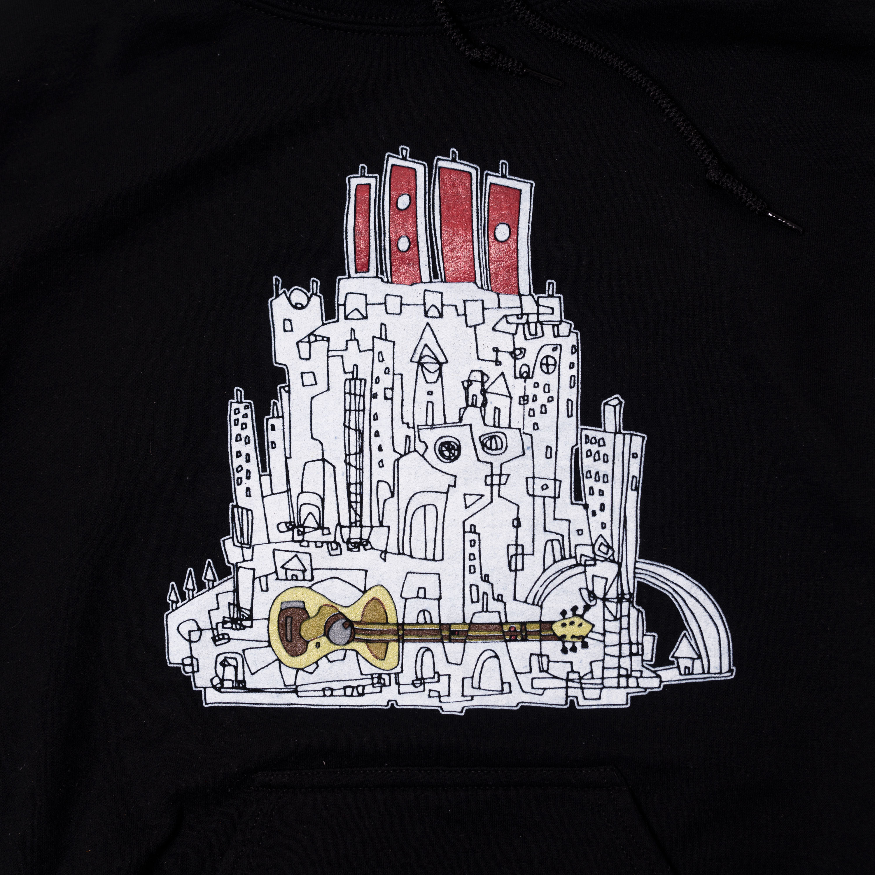 Unser StewMac by Matthew Carey Hoodie zeigt eine Vision einer musikalischen Stadt und interpretiert unser klassisches Logo komplett neu.