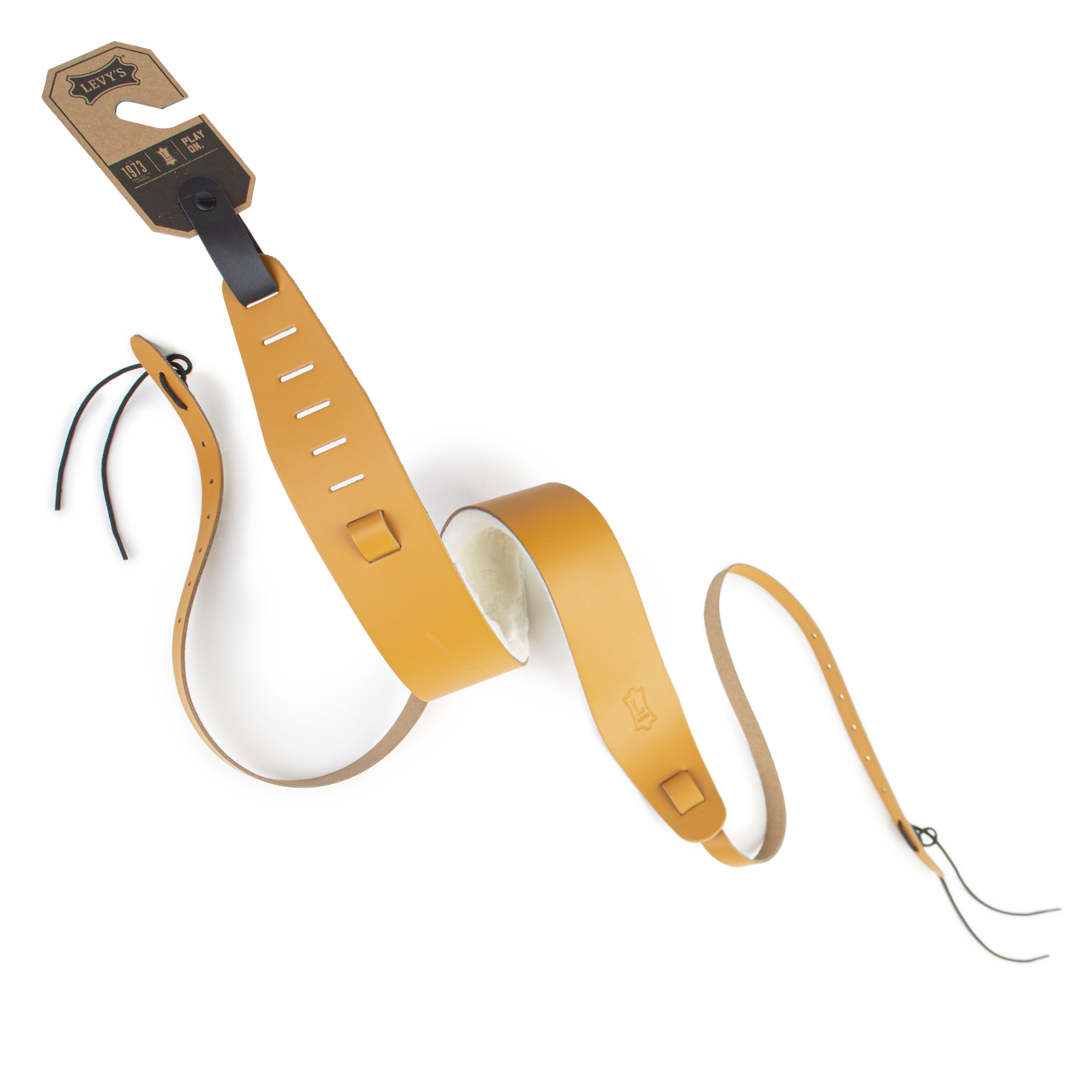 Komfort und ausgewogener Halt! A top-grain cowhide strap with comfortable 2-1/2" wide sheepskin-like shoulder padding and no metal parts to scratch the banjo.