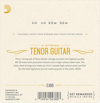 EJ66 Tenor Guitar-Strings sind aus Plain Steel und 80/20 Bronze-Wundsträngen gefertigt, die einen hellen, projizierenden akustischen Ton liefern.