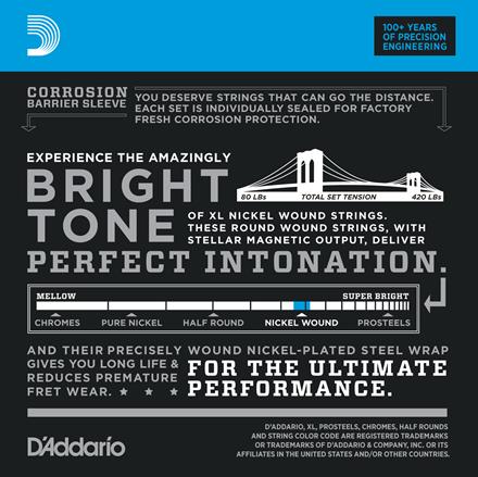 D'Addario XL Nickel Wound Electric Bass-Strings sind unter Bassspielern aller Genres und Stile weltbekannt als „The Player's Choice“. Alle XL-Strings werden auf unseren exklusiven digital gesteuerten Maschinen präzise gewickelt, um sicherzustellen, dass jeder String eine hervorragende Intonation, klare Grundlagen und beispiellose Konsistenz aufweist. Jede Schnur wird mit einem vernickelten Stahlwickeldraht umwickelt, der für seinen unverwechselbaren hellen Ton mit hervorragender magnetischer Leistung bekannt ist und einen universell ansprechenden und vielseitigen Ton für alle Spielstile liefert.