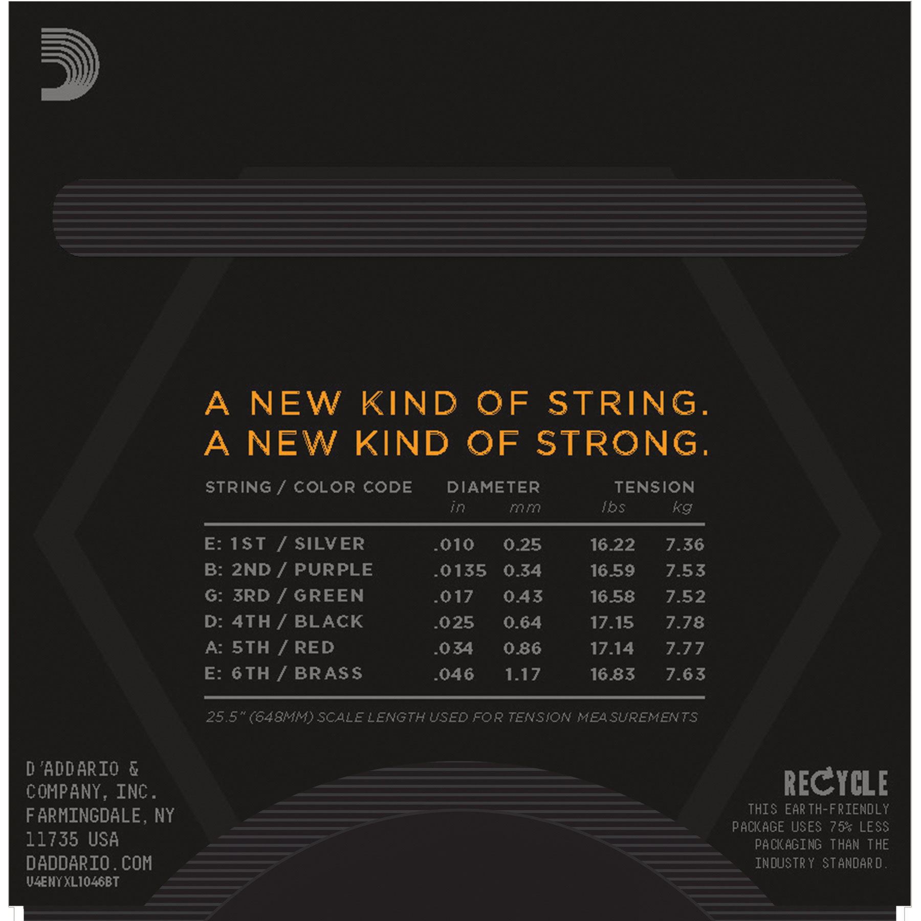 DIE EXKLUSIVE NEUE, KOHLENSTOFFREICHE STAHLLEGIERUNG VON D’ADDARIO SORGT FÜR BEISPIELLOSE FESTIGKEIT – SPIELEN SIE FURCHTLOS.