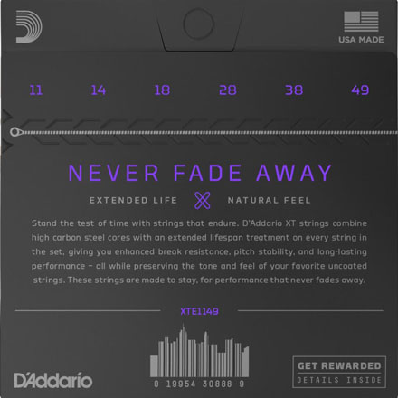 "Stellen Sie den Test der Zeit mit dauerhaften Zeichenfolgen auf. D'Addario XT-Stränge kombinieren Stahlkerne mit hohem Kohlenstoffgehalt mit einer verlängerten Lebensdauer für jede String im Set, was dir eine verbesserte Bruchfestigkeit, Neigungsstabilität und langanhaltende Leistung bietet – und gleichzeitig den Ton und das Gefühl deiner bevorzugten unbeschichteten Strings bewahrt. Diese Strings sind so gemacht, dass sie bleiben, für Leistung, die nie verblasst.“