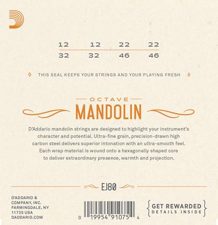Die Oktavmandolinenstränge von D'Addario sind für die Verwendung mit Oktavmandolinen verschiedener Größenordnungen konzipiert. Die abgewickelten Stränge bestehen aus reinem Stahl und die gewickelten Stränge sind Phosphorbronze.
