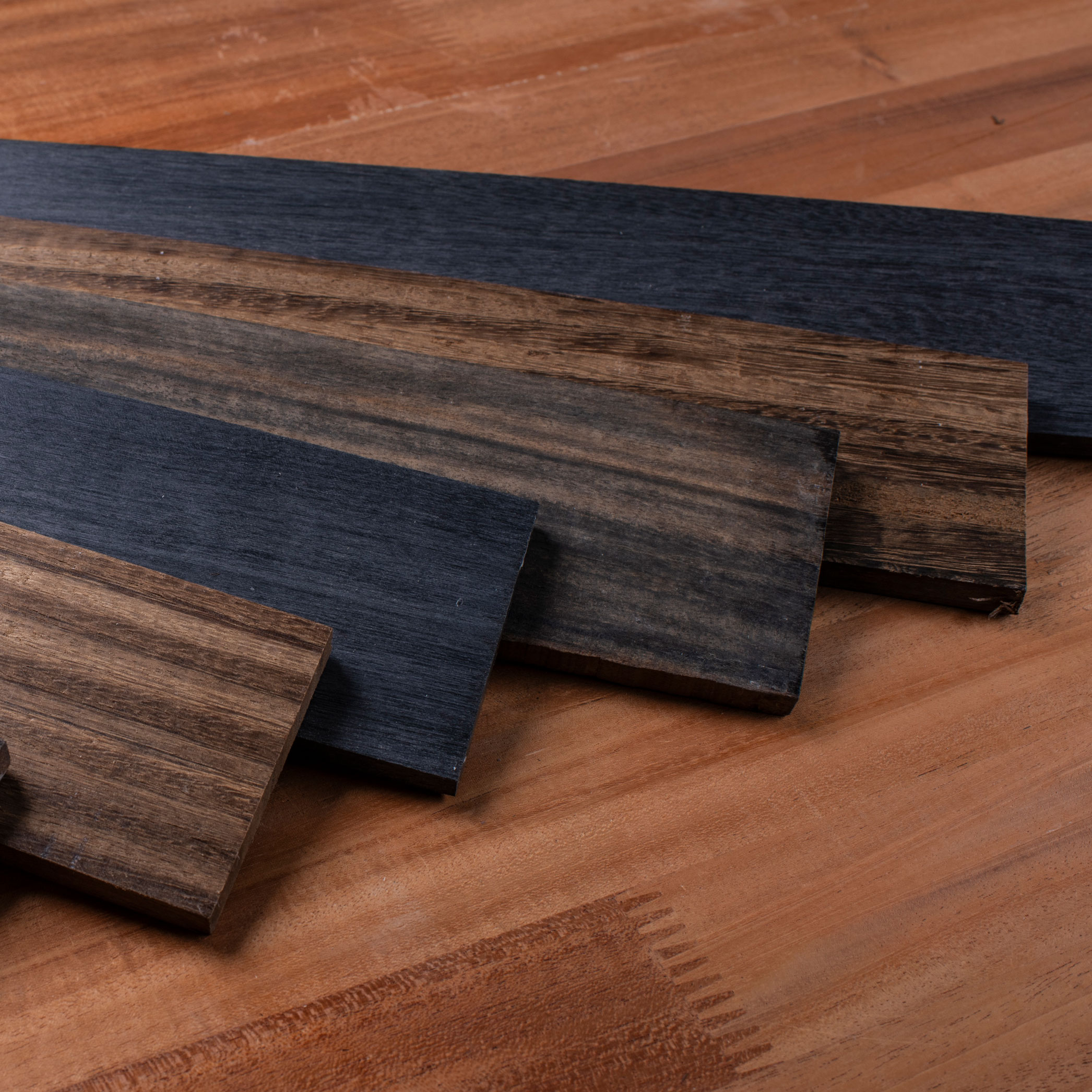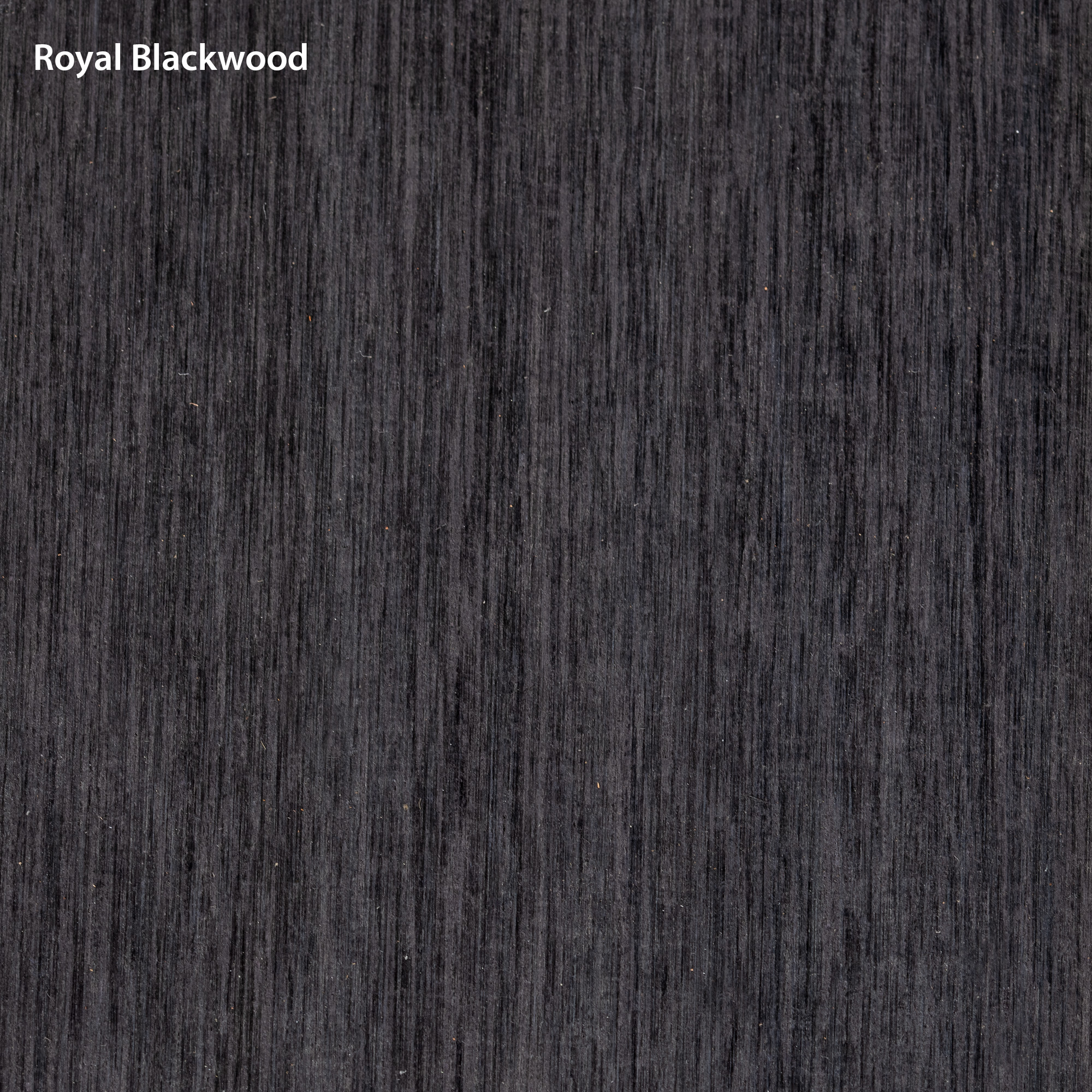 Royal Blackwood entsteht durch die Torrefikation von Purpleheart (Peltogyne catingae). Dieser Prozess ändert die Farbe des Holzes in reines Schwarz und bewahrt gleichzeitig seine natürliche Maserung und Verarbeitbarkeit. Im Gegensatz zum Farbstoff ist die schwarze Farbe im gesamten Stück einheitlich und reagiert nicht auf Klebstoffe, Feuchtigkeit oder Lösungsmittel. Mit einer Dichte zwischen Ebony und indischem Rosenholz ist es ideal für Fingerboards. Viele Bauherren verwenden es anstelle von Ebony wegen seiner bemerkenswert ähnlichen Farbe und Haptik ohne die Exportbeschränkungen.
