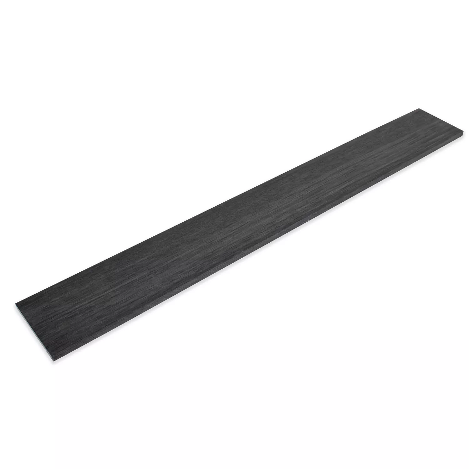 Unsere Ebony (Diospyros crassiflora) stammt aus Westafrika und ist tendenziell gleichmäßiger schwarz als aus anderen Quellen. Die meisten afrikanischen Ebonys sind jedoch nicht perfekt tiefschwarz, die meisten Boards haben sichtbare Körnungen und gelegentliche Streifen aus Grau- und Bräuntönen. Wir sind der Meinung, dass diese visuellen Variationen Charakter bieten und die Ästhetik der meisten Gitarren verbessern. Wenn Sie jedoch ein perfekt dunkles, tiefschwarzes Erscheinungsbild wünschen, sollten Sie unsere schwarze Fingerbrettfärbung verwenden, um das Board zu verdunkeln und den gewünschten visuellen Effekt zu erzielen.