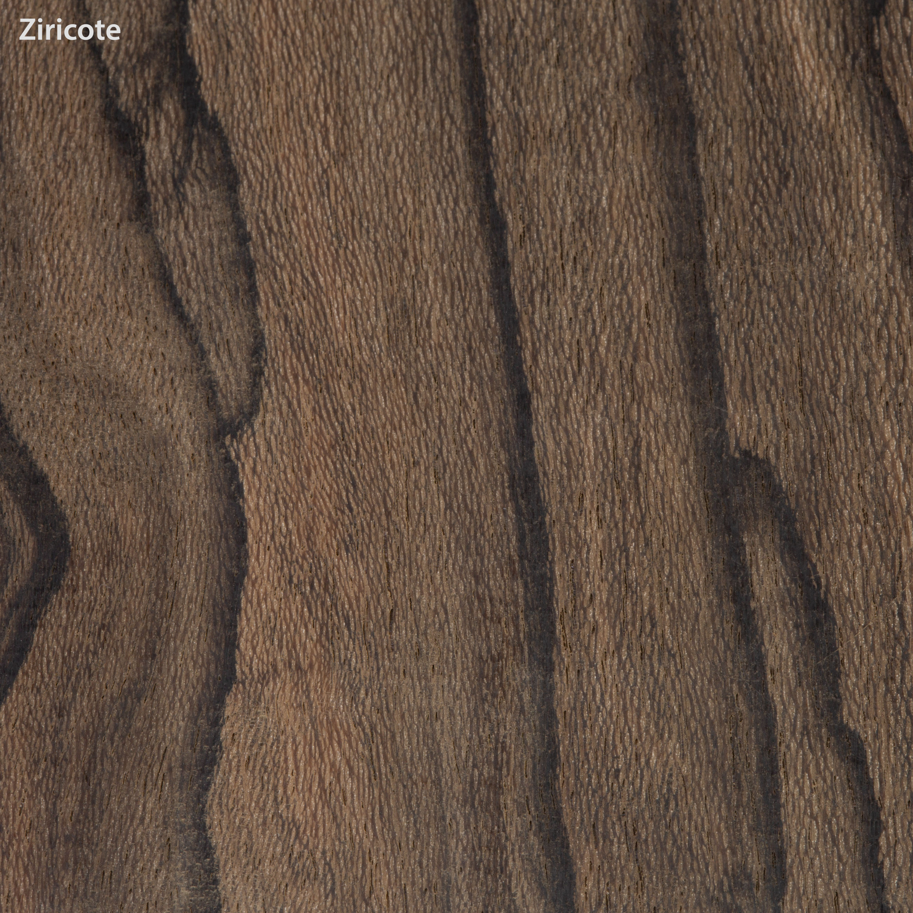 Ziricote (Cordia dodecandra) wird von vielen Bauherren als eines der visuell beeindruckendsten Tonhölzer angesehen, die heute erhältlich sind. Seine wunderschöne „verschlissene“ oder „Spinnenweb“-Figur verleiht jedem Build einen einzigartigen Look. Es hat auch eine erstaunlich vielfältige Farbpalette – prominente dunkle schwarze Linien verschmelzen oft wunderschön mit Grau-, Gold-, Grün- und Rostbrauntönen. Es ist schwerer als die meisten Rosenholzsorten und funktioniert wie Ebony.