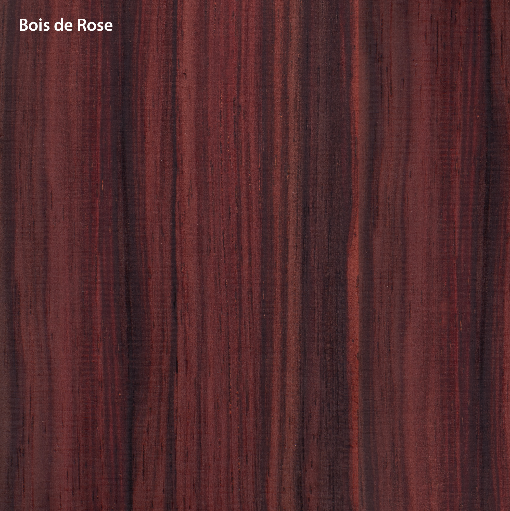 Rich und komplex sowohl in Farbe als auch Ton, Bois de Rose (Dalbergia maritima) ist ein sehr seltenes und ganz besonderes Tonholz. Obwohl es sich um ein echtes Rosenholz aus Madagaskar handelt, unterscheidet es sich von dem weithin bekannten Madagaskar-Rosenholz (Dalbergia baronii). Dieses Holz zeigt eine tiefe weinrote Farbe, die zu einem dunklen Lilaton oxidiert, der an eine Aubergine erinnert. Dank unserer Partnerschaft mit Madinter in Spanien können wir dieses außergewöhnliche Holz legal für unsere US-Kunden beziehen.