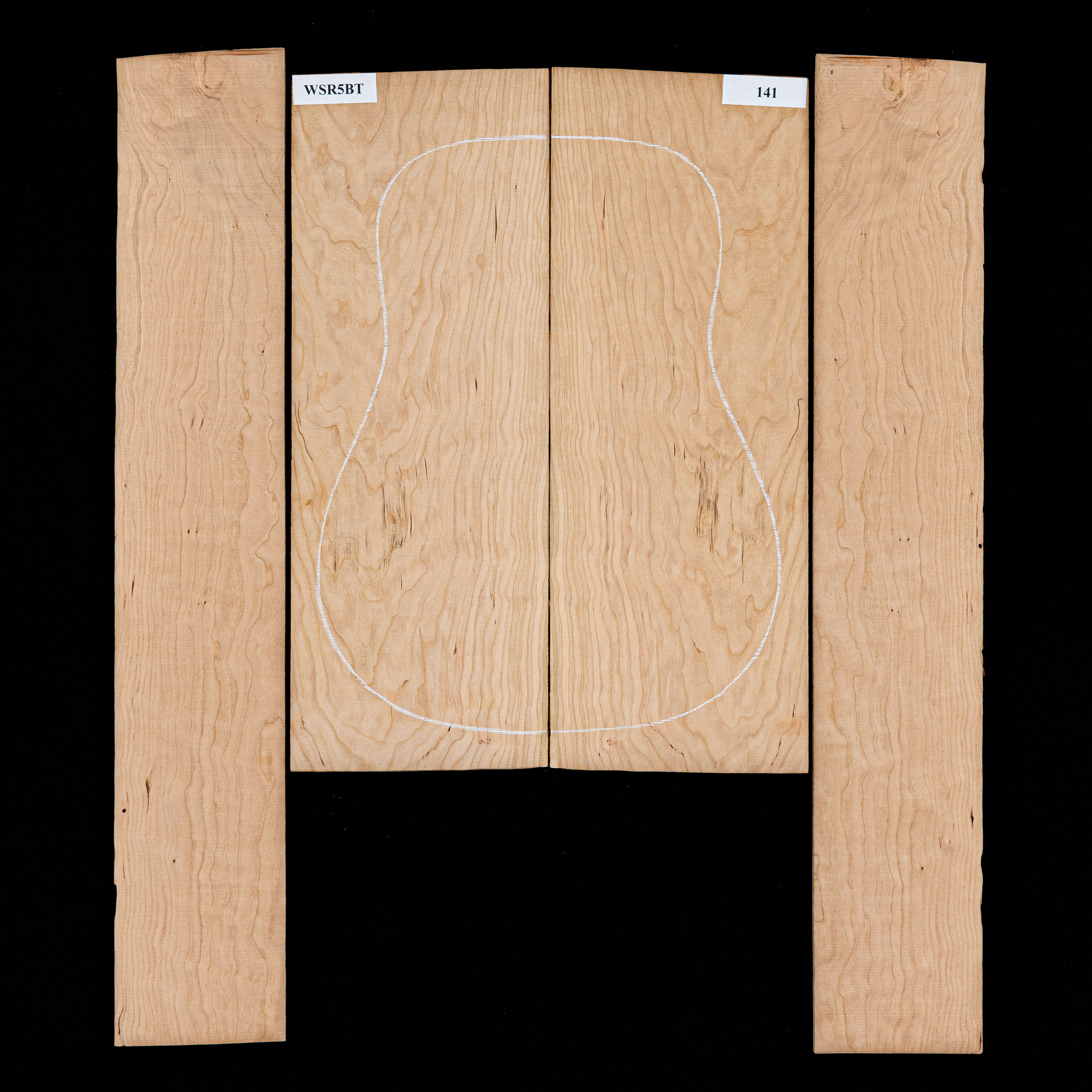 Amerikanische Kirsche ist ein extrem stabiles, bewegliches Tonholz, das bequem zwischen Maple und Mahagoni fällt. Seine natürliche helle Bräune/rötlich-braune Farbe verdunkelt sich mit der Zeit wunderschön, und sein Sapelnholz ist blasser mit einem hellrosa Farbton.