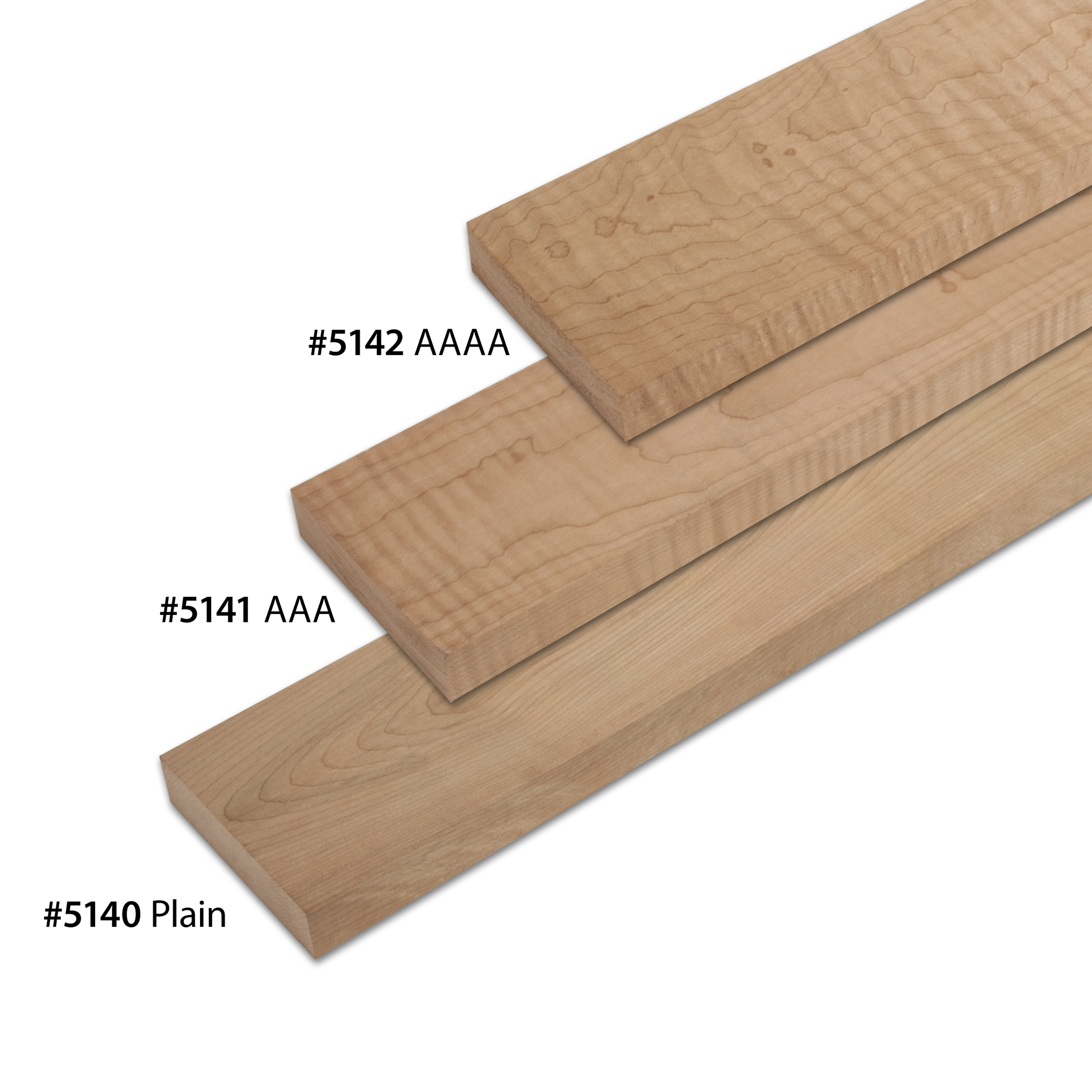 Wir bieten diese Halsausschnitte in drei Sorten von gewundenem Ahorn (Acer saccharum):