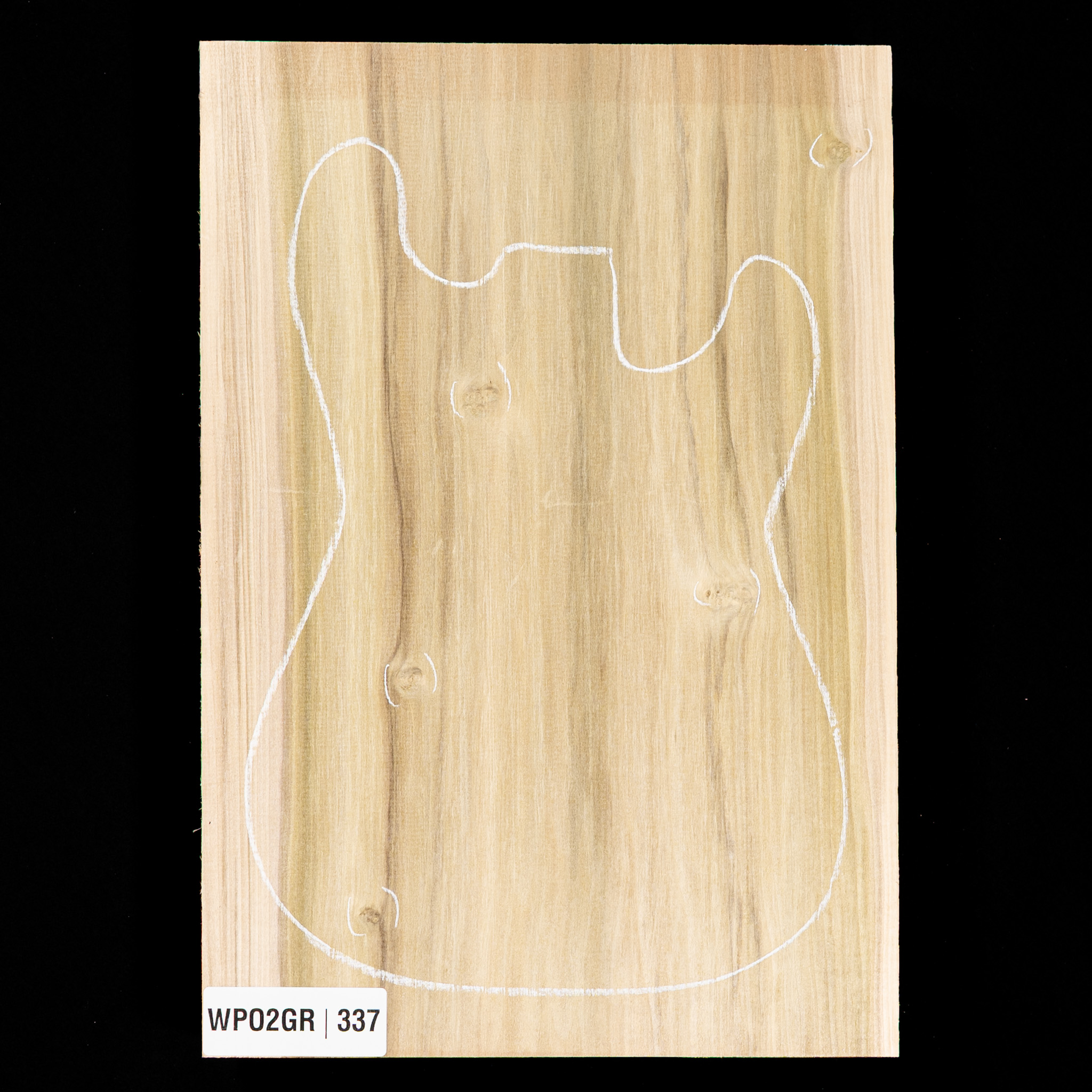 Poplar (Liriodendron tulipifera) ist ein erschwingliches und einfach zu verwendendes Tonholz, das sich ideal für elektrische Gitarrenkörper eignet. Das moderate Gewicht sorgt für ein ausgewogenes Instrument und einen gleichmäßigen Gesamtton.