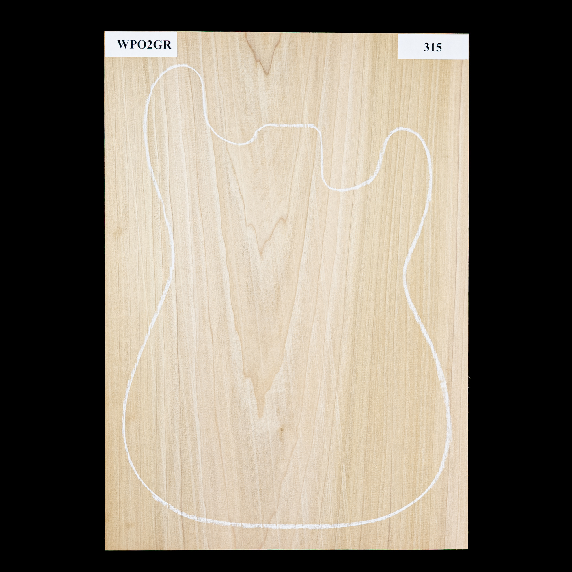Poplar (Liriodendron tulipifera) ist ein erschwingliches und einfach zu verwendendes Tonholz, das sich ideal für elektrische Gitarrenkörper eignet. Das moderate Gewicht sorgt für ein ausgewogenes Instrument und einen gleichmäßigen Gesamtton.
