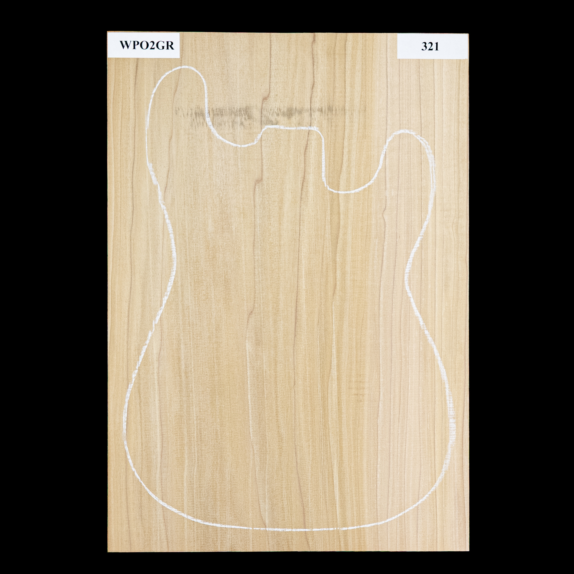 Poplar (Liriodendron tulipifera) ist ein erschwingliches und einfach zu verwendendes Tonholz, das sich ideal für elektrische Gitarrenkörper eignet. Das moderate Gewicht sorgt für ein ausgewogenes Instrument und einen gleichmäßigen Gesamtton.