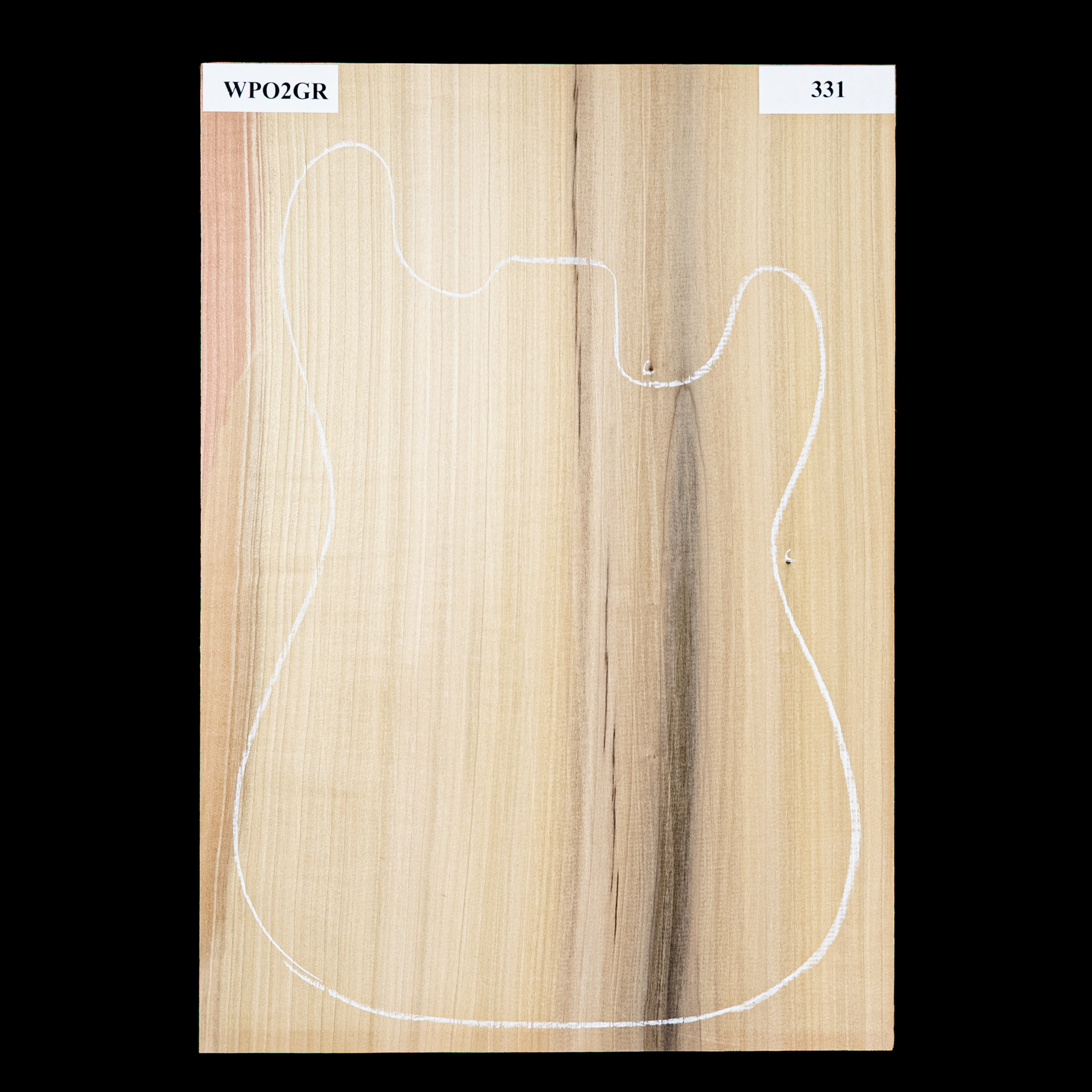 Poplar (Liriodendron tulipifera) ist ein erschwingliches und einfach zu verwendendes Tonholz, das sich ideal für elektrische Gitarrenkörper eignet. Das moderate Gewicht sorgt für ein ausgewogenes Instrument und einen gleichmäßigen Gesamtton.
