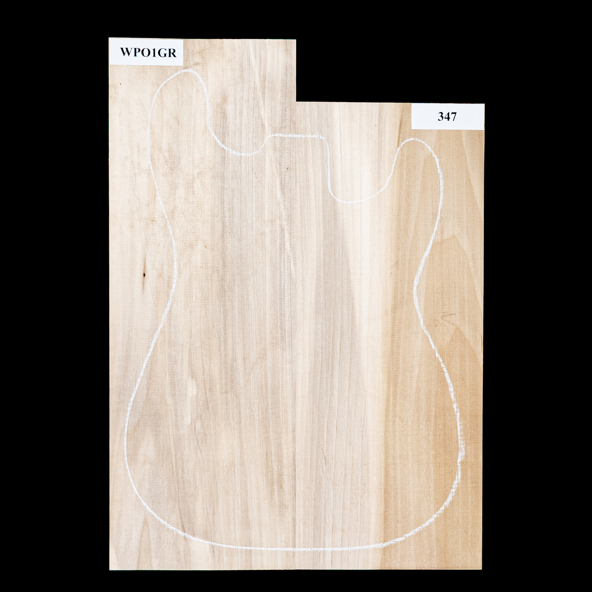 Poplar (Liriodendron tulipifera) ist ein erschwingliches und einfach zu verwendendes Tonholz, das sich ideal für elektrische Gitarrenkörper eignet. Das moderate Gewicht sorgt für ein ausgewogenes Instrument und einen gleichmäßigen Gesamtton.