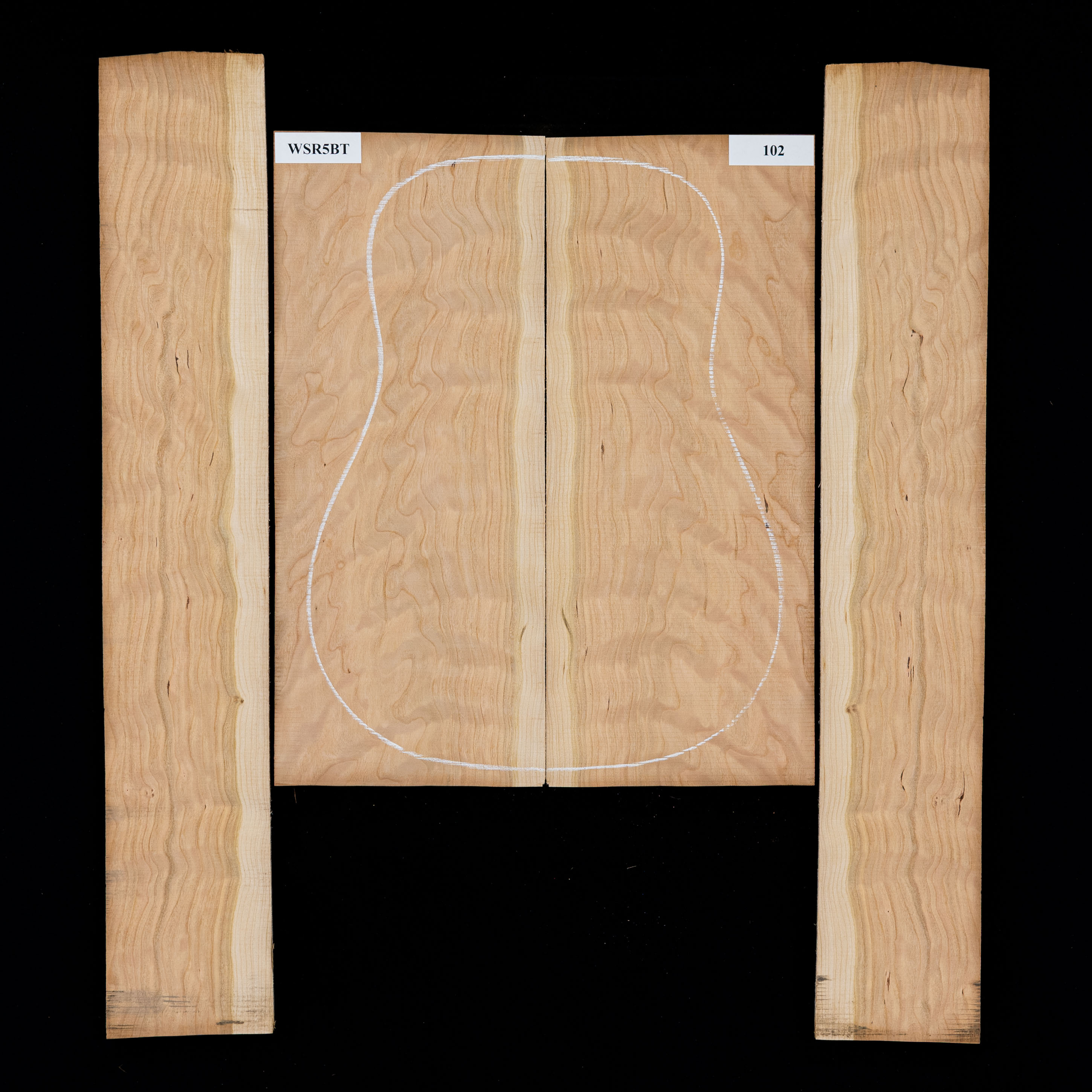 Amerikanische Kirsche ist ein extrem stabiles, bewegliches Tonholz, das bequem zwischen Maple und Mahagoni fällt. Seine natürliche helle Bräune/rötlich-braune Farbe verdunkelt sich mit der Zeit wunderschön, und sein Sapelnholz ist blasser mit einem hellrosa Farbton.