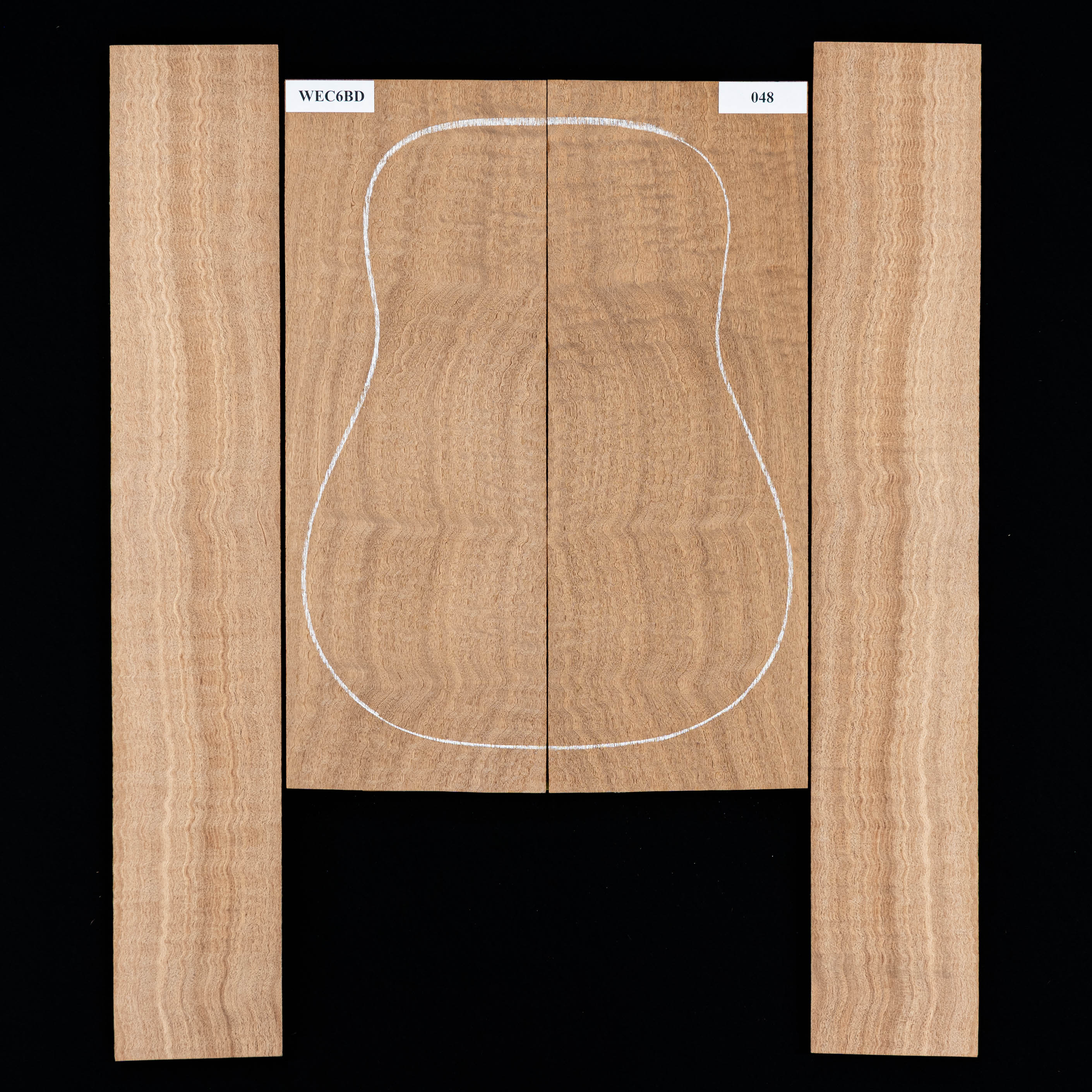 Sapele wird oft als einer der „African Mahoganies“ bezeichnet, ist aber weder eine Swietenia noch eine Khaya. Aufgrund der großen Bäume und der kommerziellen Verfügbarkeit ist Sapele ein erschwingliches Tonholz, das viele visuelle und tonale Qualitäten von echtem Mahagoni aufweist, ohne die zusätzlichen Einfuhrbeschränkungen.