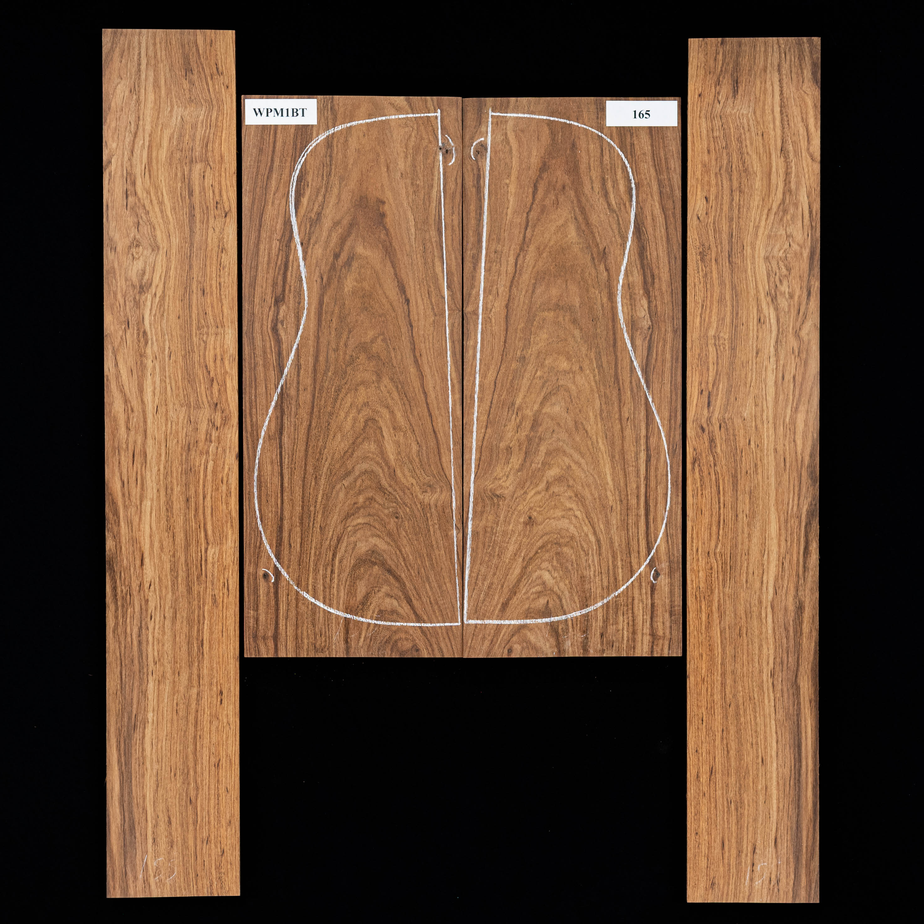 Die natürliche mittelbraune Farbe von Granadillo, oft mit einem Hauch von Lila oder Rot, oxidiert mit der Zeit wunderschön zu einer tiefen, reichhaltigen Schokolade. Wellenförmige, flussähnliche Figuren sind bei höherwertigen Sets normal.