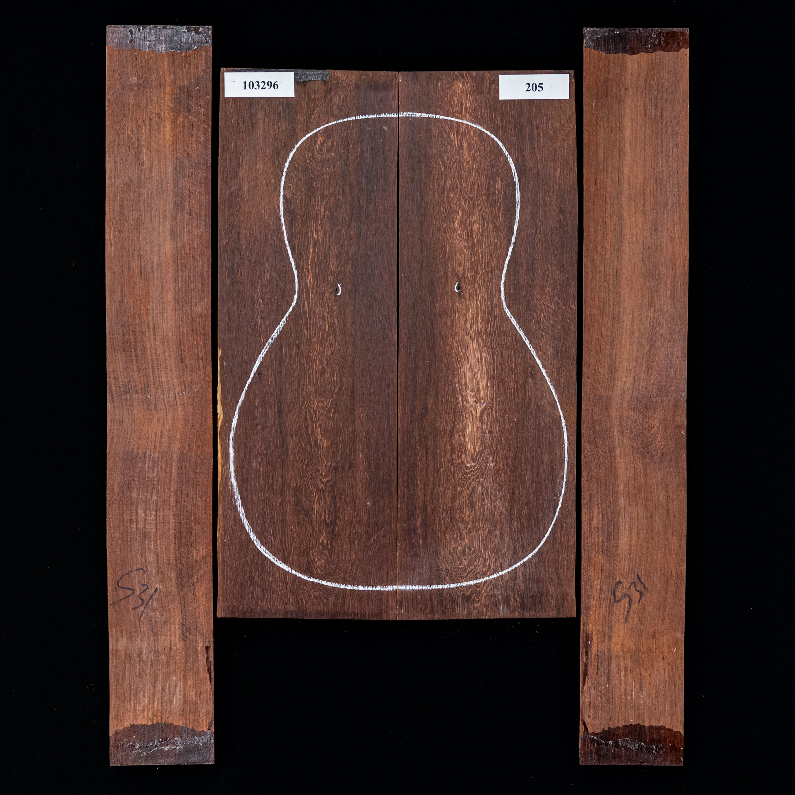 Madagaskar Rosenholz Rücken- und Seitenset, O - 205 Artikel # 103296|205
