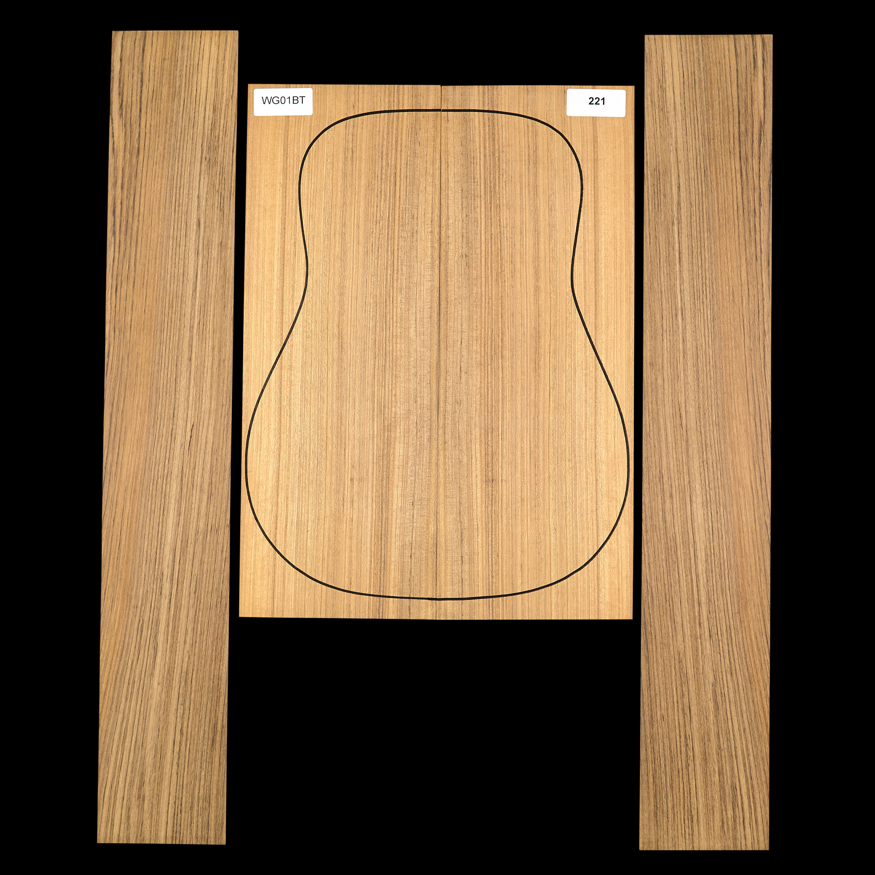 Die Bäume werden in Westafrika angebaut und sind recht groß (100 - 150 ), wodurch perfekt genarbte Sets einfach und reichlich zu erwerben sind. Die Farbe reicht von Gold bis Braun mit starken, markanten dunklen Kornlinien und gelegentlich schwarzen Leopardenflecken, die unter der Oberfläche atemberaubend schön sind.