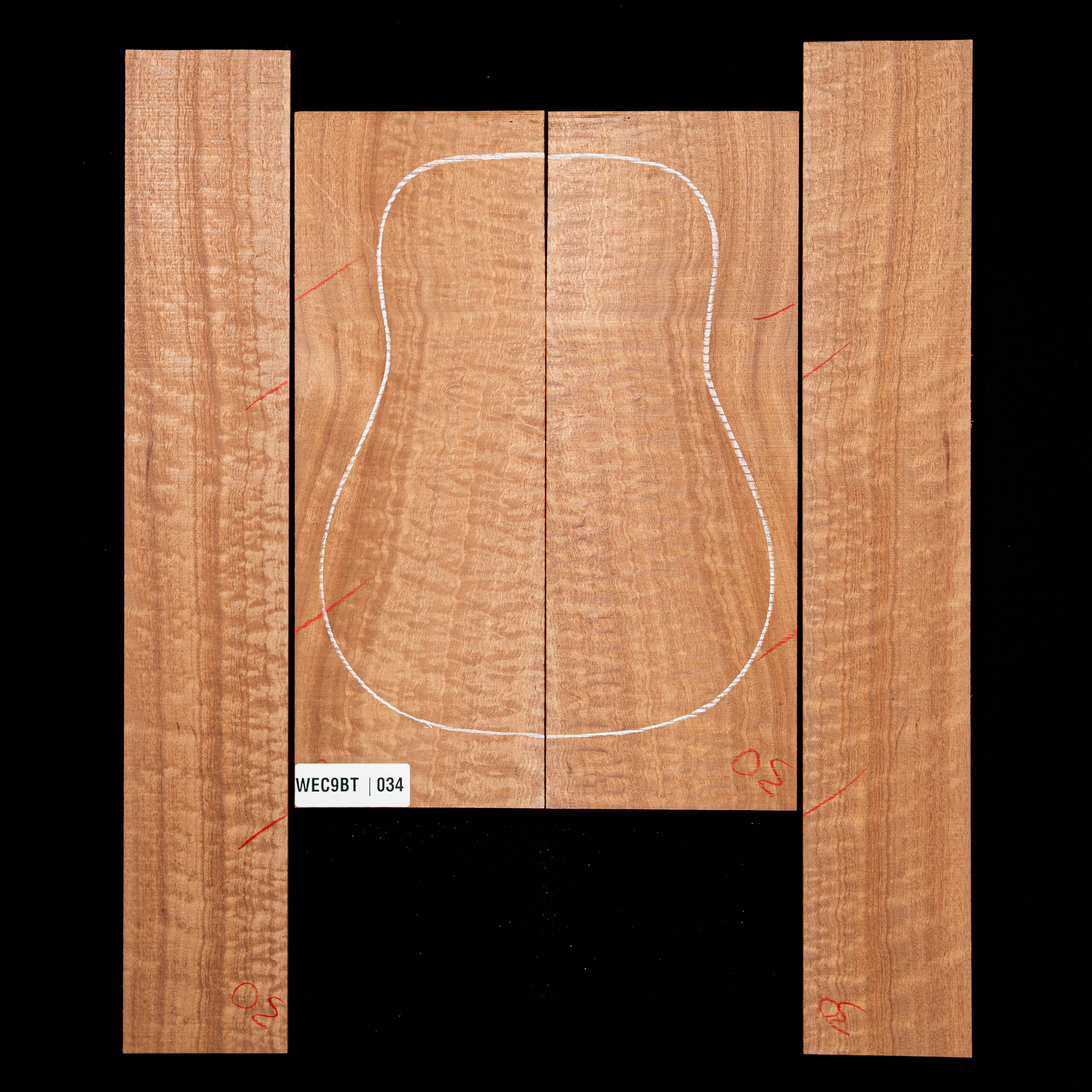 Dieser Pomelle Sapele hat dynamische visuelle Eigenschaften, mit traditioneller Seilfigur, intensiven Locken und herausragender Steppung. Viele der intensivsten figurbetonten Sets sind immer noch viel günstiger, als man für eine ähnliche Figur in Honduran Mahogany erwarten würde.