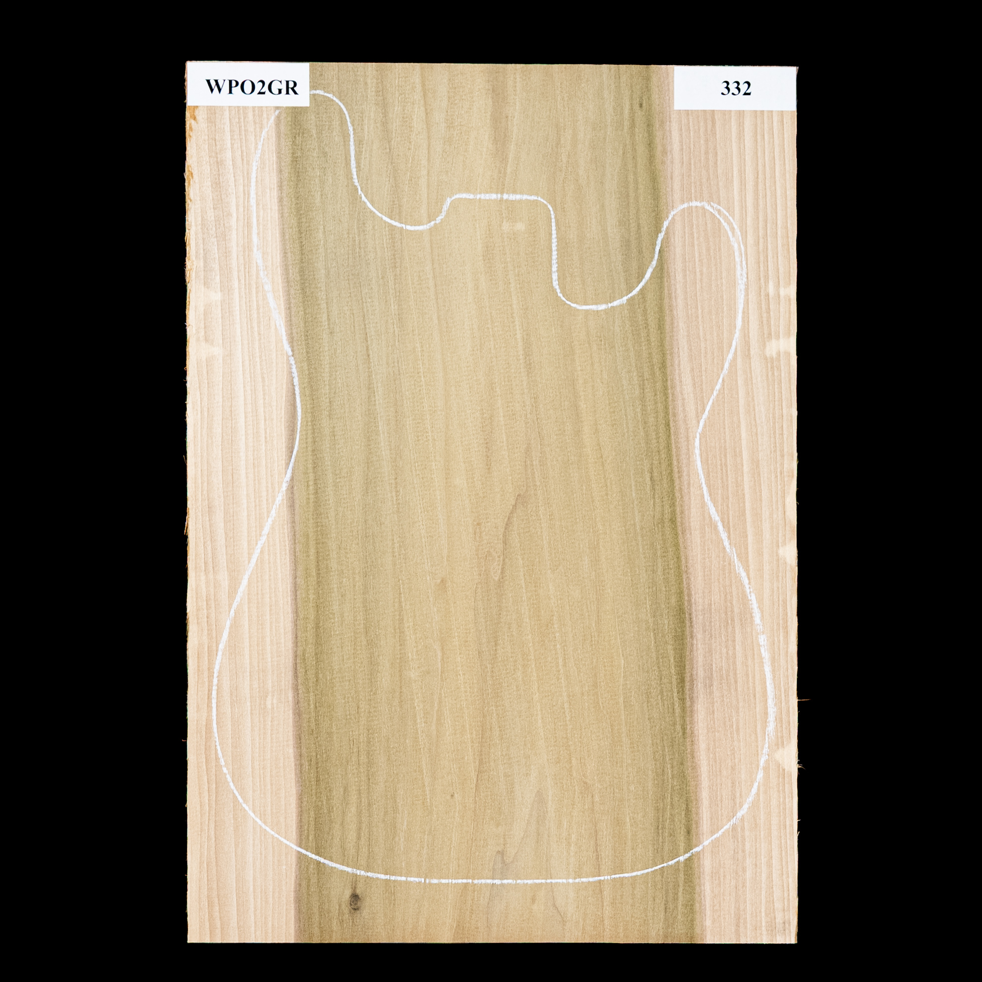 Poplar (Liriodendron tulipifera) ist ein erschwingliches und einfach zu verwendendes Tonholz, das sich ideal für elektrische Gitarrenkörper eignet. Das moderate Gewicht sorgt für ein ausgewogenes Instrument und einen gleichmäßigen Gesamtton.