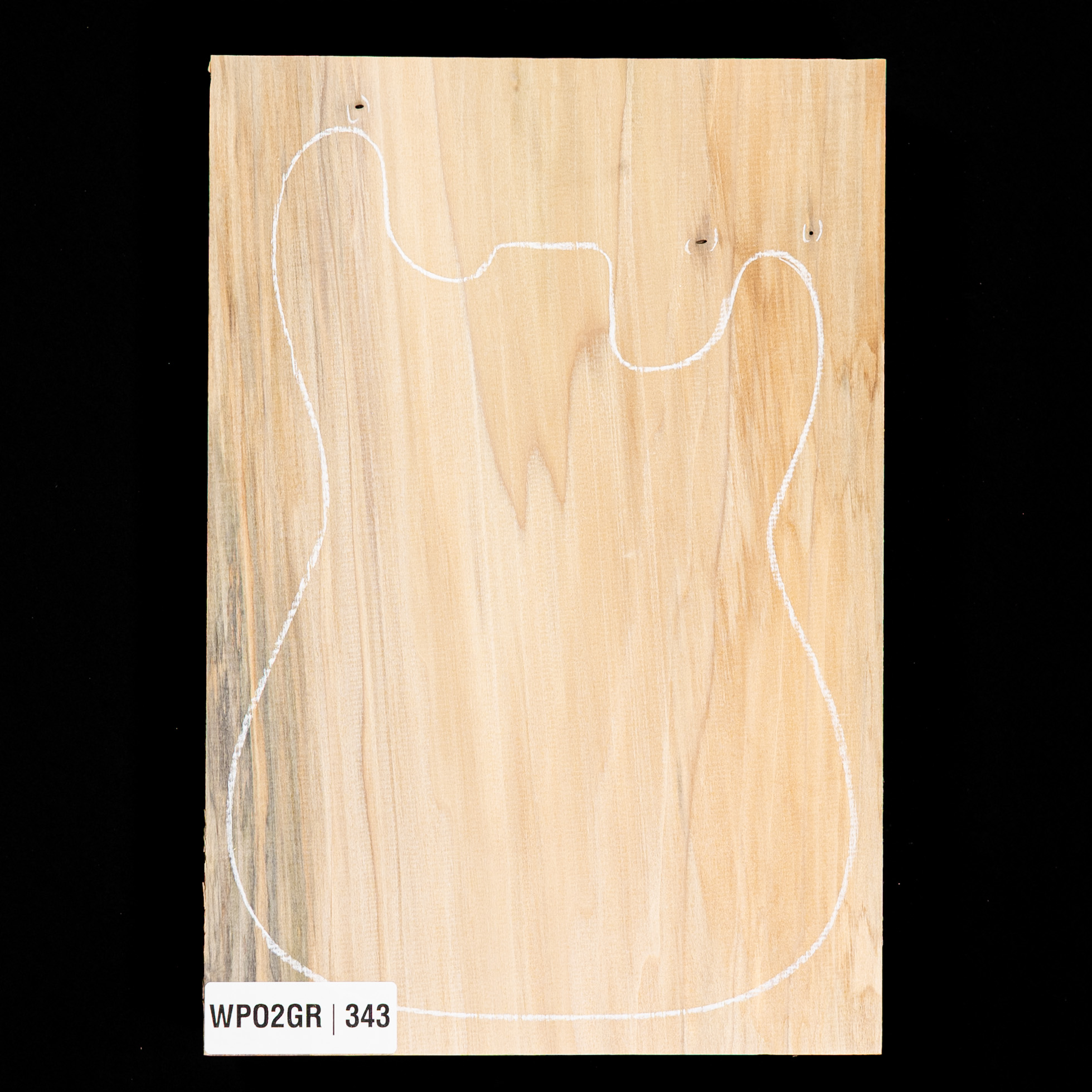 Poplar (Liriodendron tulipifera) ist ein erschwingliches und einfach zu verwendendes Tonholz, das sich ideal für elektrische Gitarrenkörper eignet. Das moderate Gewicht sorgt für ein ausgewogenes Instrument und einen gleichmäßigen Gesamtton.