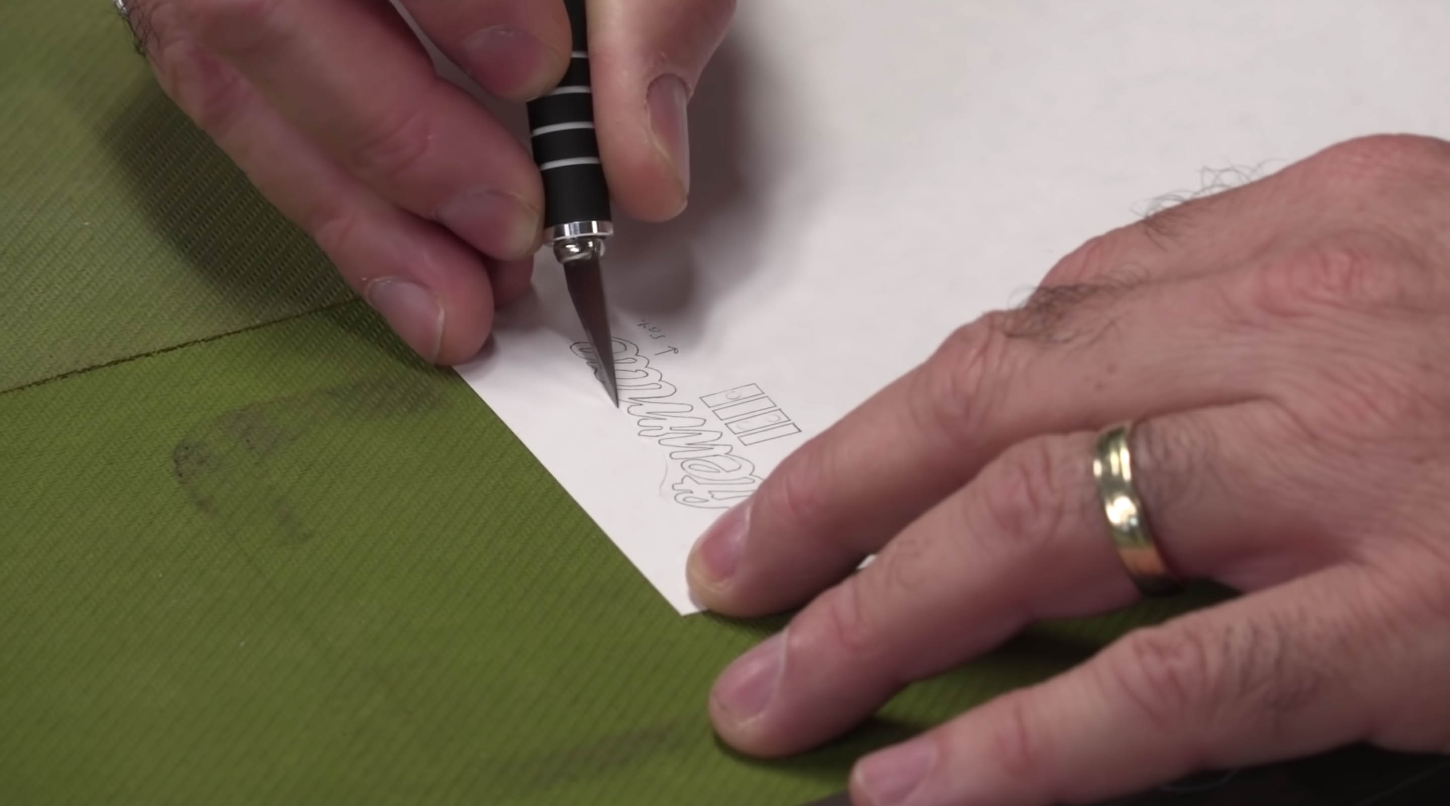Als Nächstes nehmen wir eine dieser Papierkopien unseres Designs und schneiden unser Logo so genau wie möglich mit einer scharfen X-Acto Klinge (oder einem Rasiermesser) aus. Verwenden Sie Ihr Cutout-Logo, um genau zu bestimmen, wo sich Ihr Griffbretteinlage auf dem Kopfplatte befinden soll.