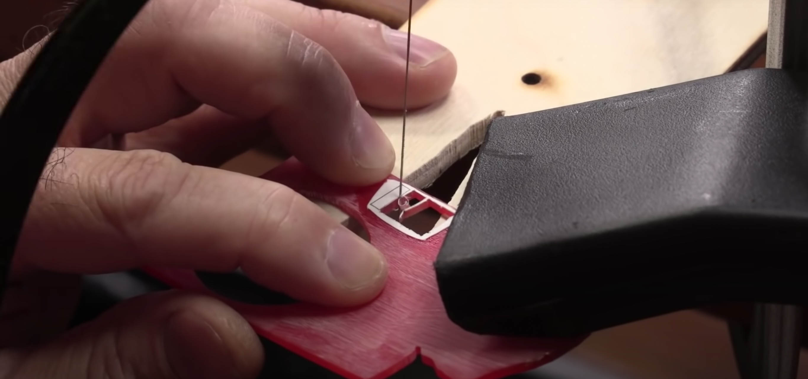 PRO TIPP: Auch wenn Ihre Klinge nicht bricht, wird sie beim Schneiden immer noch stumpfer. Scheuen Sie sich also nicht, Ihre Klingen zu wechseln. Ich bin ungefähr zur Hälfte durch das Schneiden der oberen Kante dieses Logos, und ich werde die Klinge wechseln und sicherstellen, dass sie gut und angespannt in der Säge ist.