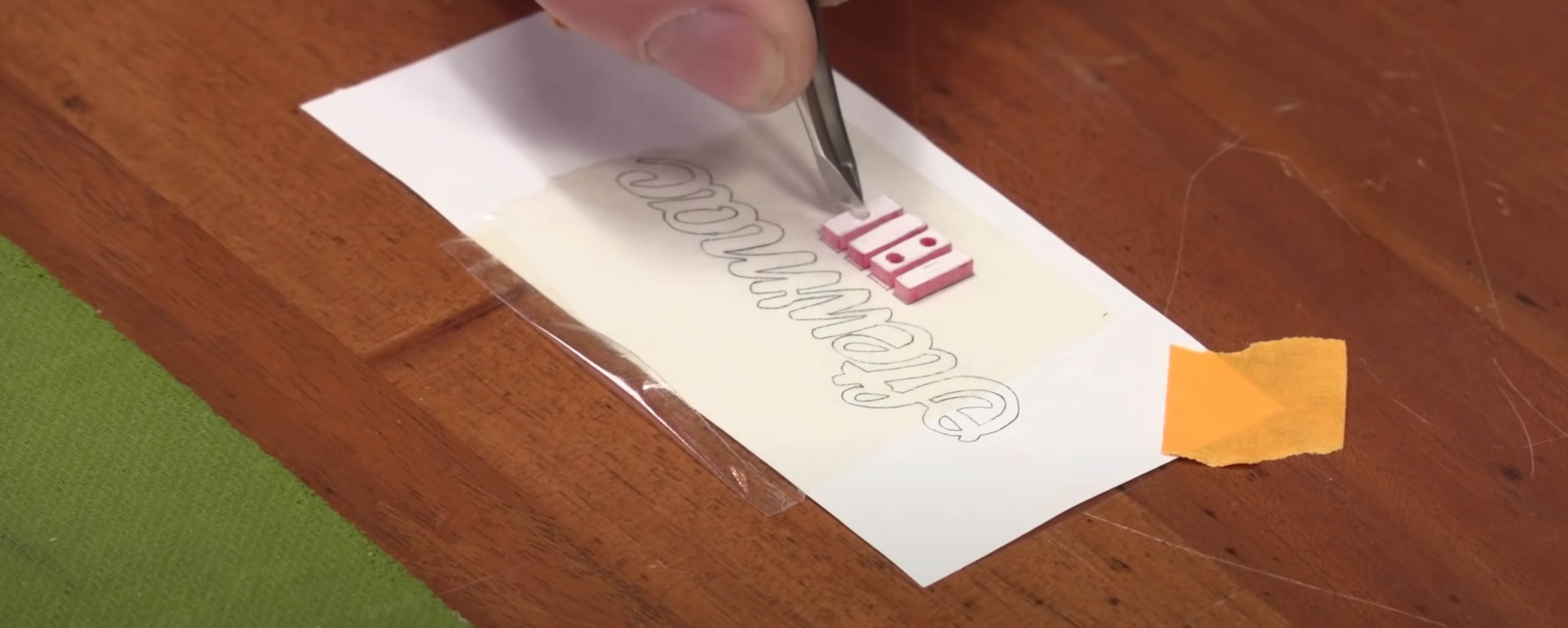 Nun, da wir das Oberteil ausgeschnitten haben, halte ich gerne an und reinige alles, was ich brauche. Ich verwende gerne dieses doppelseitige 3M Stikit Schleifpapier. Ich verwende 220-Grit. Ich nehme meine X-Acto Klinge und lege das Stikit direkt auf die X-Acto Klinge. Nehmen Sie dann eine weitere X-Acto Klinge und schneiden Sie den Überschuss weg. Das gibt mir eine superdünne Datei, mit der ich die Oberkante des Perlenlogos bereinigen kann.