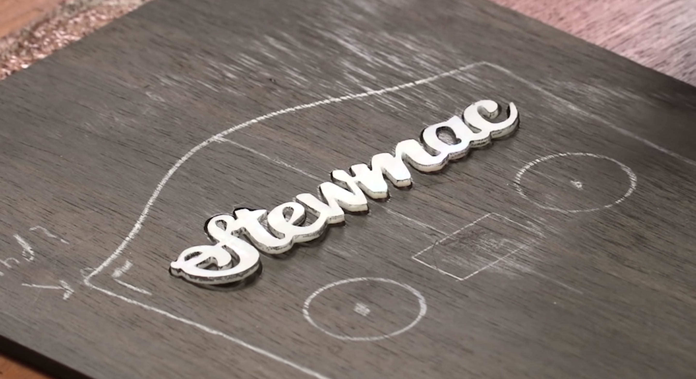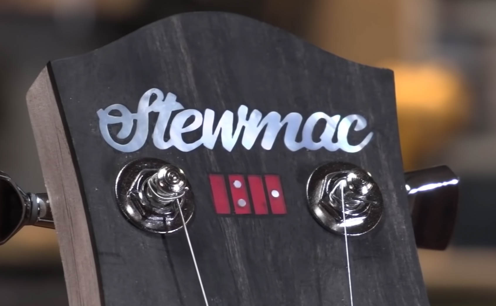 Wir haben unser Logo bereit. Wie Sie sich erinnern werden, besteht es aus zwei Teilen. Das erste ist das Skript, das „StewMac“ in Perle sagt. Das zweite Stück ist das kleine quadratische Griffbrett aus einem synthetischen Stoff namens Atlante mit Perlmutt-Fret-Markerpunkten .