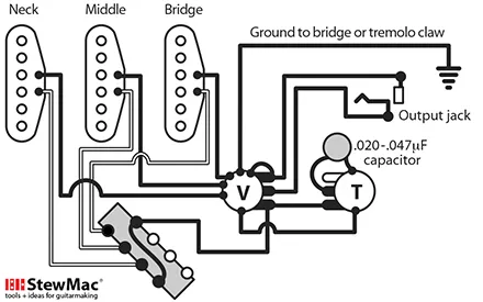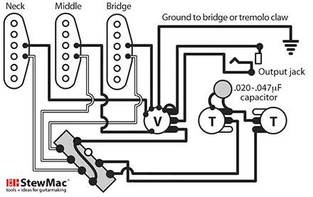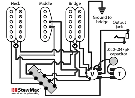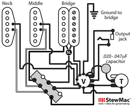 Tonverdrahtung Strat® -Verdrahtung, 3 Single-Coil-Aufnahmen und CRL-Schalter