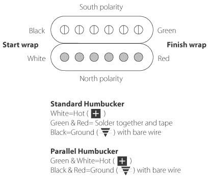 Schaltpläne und Farbcodes für Gotoh Humbucking-Abholungen.