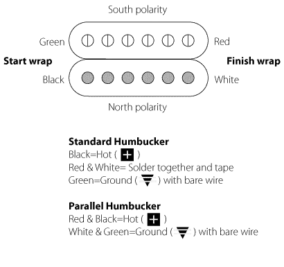 Schaltpläne und Farbcodes für Railhammer-Humbucking-Aufnahmen.