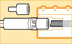 Drehen Sie die Einstellmutter der Spannstange gegen den Uhrzeigersinn, um sie von der Gewindestange zu entfernen. Manchmal ist nur eine Reinigung der Gewinde der Stange erforderlich. Verwenden Sie dazu die Gewindeschneidematrize und drehen Sie sie vorsichtig auf die vorhandenen Gewinde. Durch einmaliges An- und Abschrauben der Matrize wissen Sie, dass die Stange gereinigt ist und für ihre Einstellmutter bereit ist.