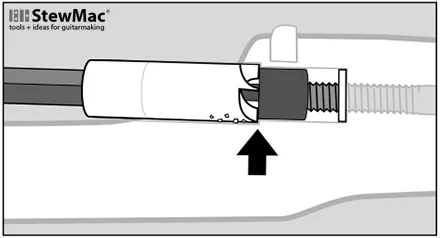 Dazu müssen Sie die Schlagscheibe um die Stange herum entfernen. Ein Schreiber oder Mikromeißel funktioniert gut dafür. Verwenden Sie dann den Holzschneider, um etwa 7/16" frisches Gewinde freizulegen. Reinigen Sie die Gewinde mit der entsprechenden Matrize und installieren Sie einen dünnen (0,040") Abstandshalter.